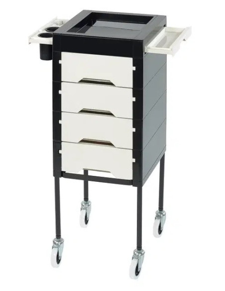 Stilfuld og funktionel frisørvogn med fire lukkede sider, der giver den et elegant og moderne udseende.