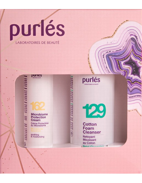 Purles 162 Microbiome Protection Cream 50ml er en sofistikeret, nærende opløsning, der er designet til at fugte og skabe en beskyttende hudbarriere. Ideel til afslutning af hudplejerutiner, udnytter den kraften i et specielt præbiotisk kompleks til at fremme væksten af ​​gavnlige bakterier, genoprette og opretholde balancen i hudens mikrobiom. Cremen er særligt velegnet til ekstremt følsom hud, herunder hud med tendens til atopi, beskytter mod miljømæssige stressfaktorer og reducerer ubehaget ved tør, skællende hud. Ved regelmæssig brug styrker cremen hudens barrierefunktioner, fremmer hydrering og reducerer irritation og dehydrering, hvilket sikrer en glat og sund teint. BRUG: Påfør på ansigt, hals og décolleté, og massér med blide cirkulære bevægelser, indtil den er fuldt absorberet. + Oplev den blide berøring af Purles 129 Cotton Foam Cleanser 125ml til din daglige hudrensningsrutine. Ideel til følsom hud, fjerner denne skum effektivt makeup, samtidig med at den beskytter det sarte øjenområde. Takket være sin naturlige sammensætning opretholder den effektivt hudens hydrolipidbalance uden at forårsage irritation. 97% af ingredienserne er af naturlig oprindelse! Denne renseprodukt er velegnet til alle, der leder efter en hudvenlig makeupfjerner, der også beskytter og fugter huden. Den er især gavnlig for dem med sensitiv hud eller dem, der foretrækker ingredienser af naturlig oprindelse. Ved regelmæssig brug kan du forvente en renset, fugtet og beroliget teint, der hjælper med at opretholde hudens naturlige balance og modstandsdygtighed. BRUG: Påfør på fugtig hud, massér blidt ind i ansigt, hals og décolleté, inklusive øjnene. Skyl med vand. Brug dagligt for de bedste resultater.