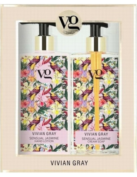 VIVIAN GRAY Sensual Jasmine håndplejesæt. Sættet indeholder: nærende cremesæbe + fugtgivende lotion. Forkæl dig selv og dine kære med det perfekte Vivian Gray Sensational kosmetiksæt! Produkterne har en behagelig jasminaroma, fugter og nærer huden og gør den blød. Det perfekte sæt til gave. Anvendelse: Brug hvert produkt i kosmetiksættet i henhold til instruktionerne på etiketten.