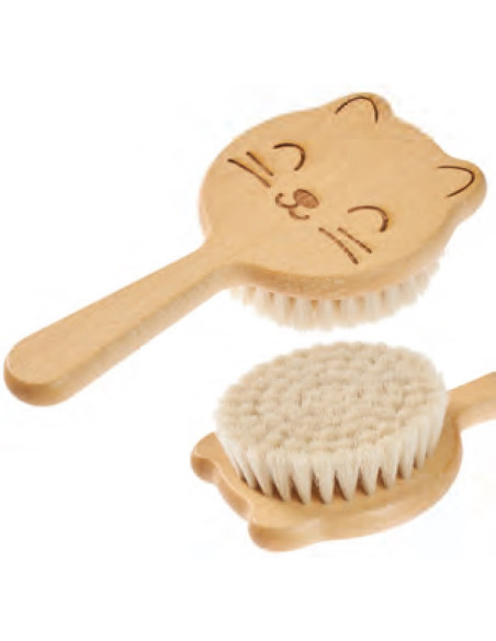 Babybørste i en sjov dyreform – skånsom pleje til de små! Denne yndige, dyreformede børste er designet med babyers sarte hovedbund i tankerne og har et sødt lasergraveret kattemotiv. Lavet af olieret bøgetræ med bløde gedebørster, der giver skånsom pleje, der beroliger og plejer din lille guldklumps hår og hud. • Størrelse: 165 x 85 mm • Lavet af olieret bøgetræ. • Lasergraveret kattemotiv. • Bløde gedebørster.