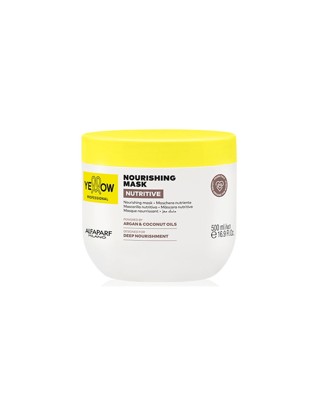 En dybt nærende maske med en rig tekstur giver tørt hår intens hydrering og næring, giver håret blødhed og glans og gør det lettere at rede. Formlen er beriget med: - arganolie, som indeholder omega-3, omega-6 og E-vitamin, genopretter hårets vitalitet og giver håret silkeblødhed; - kokosolie, som indeholder blødgørende ingredienser og E-vitamin, fugter og nærer hårfibrene ideelt set, forhindrer håret i at kruse; - Aloetrix-kompleks med aloe vera, hvedeproteiner og UV-filtre fugter håret, gør håret lettere at rede og beskytter det yderste lag af hårstrukturen. Begge olier har fremragende fugtgivende og regenererende egenskaber. BRUG: Påfør masken i fugtigt, håndklædetørt hår, fordel jævnt langs hele hårets længde og spidser. Lad masken sidde i håret i 5 minutter. Skyl derefter. For mere intens hårpleje og en længerevarende effekt kan Yellow Professional Nutritive Nourishing Leave-in Cream påføres i håndklædetørt hår.