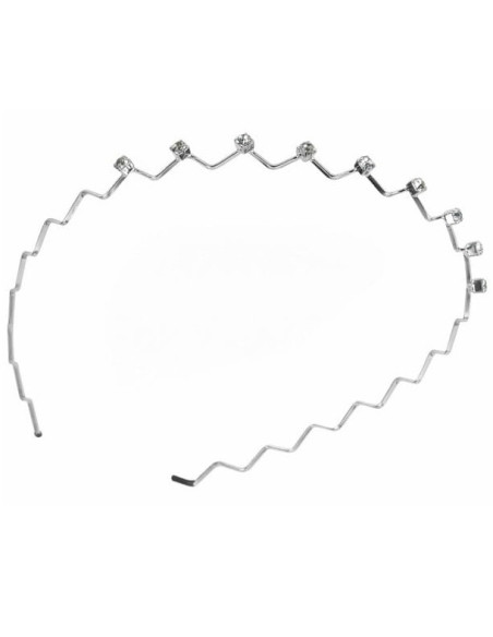 Metal, dekorativ hårbøjle i sølv med krystaller. Det er et smukt smykke til særlige lejligheder.