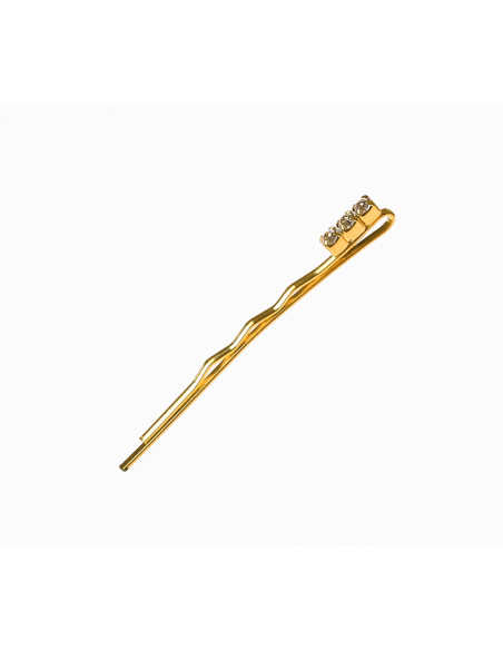 Hårspænder, dekorative, bølgede, guld med 3 krystaller, 4 stk.