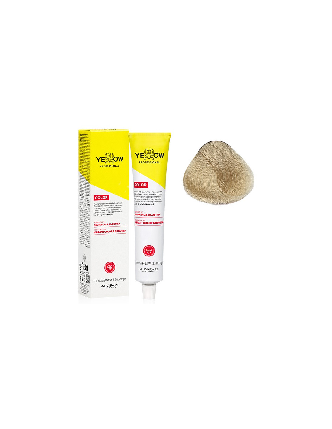 GUL FARVE - professionel, nærende permanent hårfarve, der effektivt farver håret, dækker 100% gråt hår og er særligt skånsom mod hårstrukturen og hovedbunden takket være dets meget lave ammoniakindhold. Resultaterne efter farvning - skinnende, silkeblødt og glat hår. Hårfarve giver professionelle resultater: • dækker håret jævnt, • farver gråt hår perfekt, • giver håret en naturlig og jævn tone, • er særligt holdbar, og efter farvning bevarer hårtonen sin mætning i 1 måned, • giver håret glans, fugter og nærer håret. Takket være det lave indhold af alkaliske ingredienser lysner og farver GUL FARVE hårfarve håret meget skånsomt og opretholder den optimale balance i hårets pH-niveau. Hårfarve er kun egnet til blanding med GUL FARVE PEROXID eller TECH+ PEROXID oxidanter. Den unikke formel i YELLOW COLOR hårfarve er beriget med: - Arganolie, der indeholder omega 3, omega 6 og E-vitamin, og som genopretter hårets vitalitet og giver håret en silkeagtig tekstur; - Aloetrix-kompleks, der indeholder aloe vera, hvedeproteiner og UV-filtre, og som fugter håret, letter udredning og beskytter det yderste lag af hårets struktur. BRUG: I en ikke-metallisk beholder blandes den valgte YELLOW COLOR hårfarve med en af ​​YELLOW COLOR PEROXIDE- eller TECH+ PEROXIDE-oxidanterne 1,5% (5 vol.), 3% (10 vol.), 6% (20 vol.), 9% (30 vol.) eller 12% (40 vol.) afhængigt af den valgte behandling og det ønskede resultat. Listen over mulige behandlinger, blandingsforhold for hårfarve og oxidant samt virketider er nævnt i brugsanvisningen til YELLOW COLOR hårfarven, som kan ses ved at scanne QR-koden på farveemballagen med den relevante applikation på en mobilenhed.