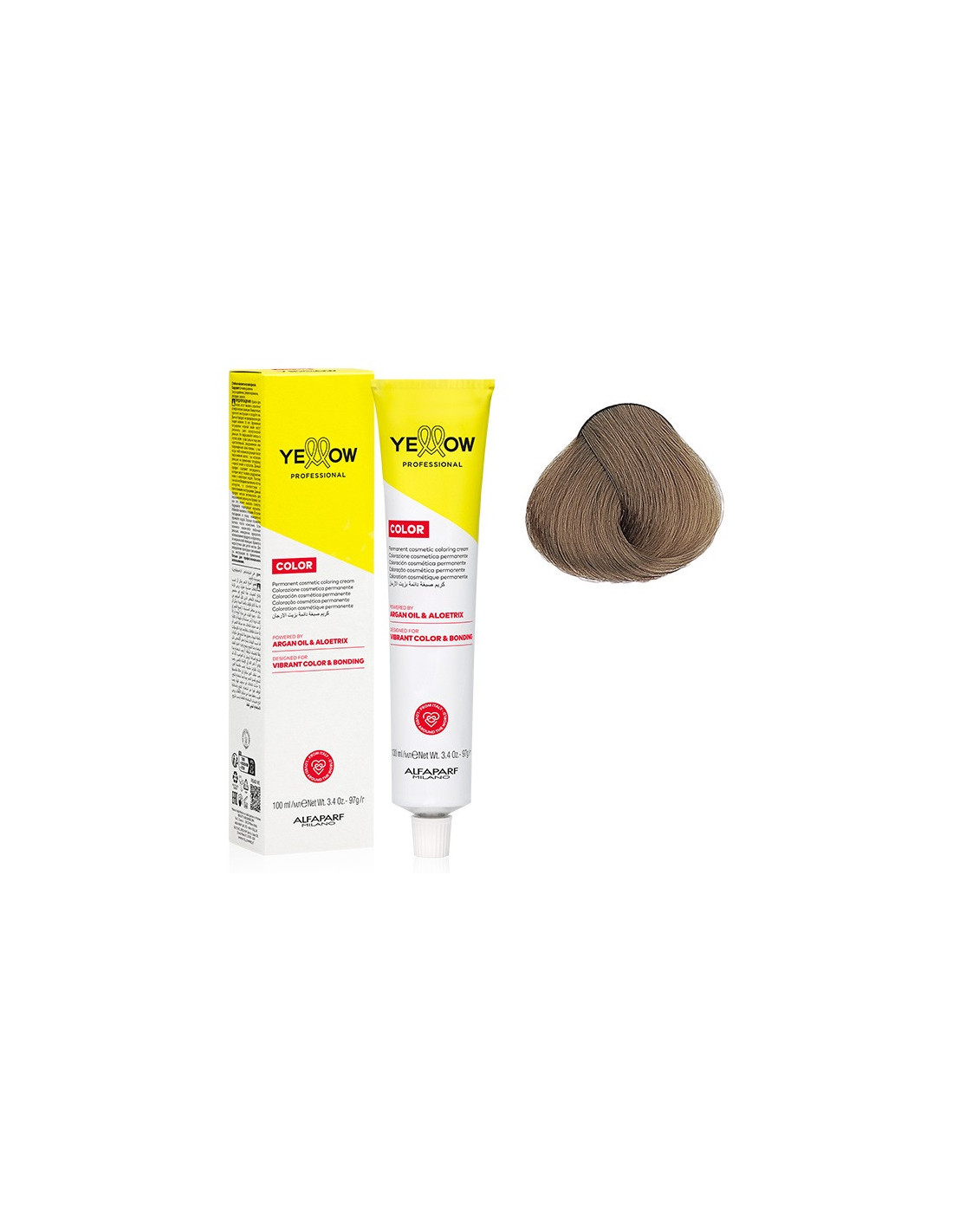 GUL FARVE - professionel, nærende permanent hårfarve, der effektivt farver håret, dækker 100% gråt hår og er særligt skånsom mod hårstrukturen og hovedbunden takket være dets meget lave ammoniakindhold. Resultaterne efter farvning - skinnende, silkeblødt og glat hår. Hårfarve giver professionelle resultater: • dækker håret jævnt, • farver gråt hår perfekt, • giver håret en naturlig og jævn tone, • er særligt holdbar, og efter farvning bevarer hårtonen sin mætning i 1 måned, • giver håret glans, fugter og nærer håret. Takket være det lave indhold af alkaliske ingredienser lysner og farver GUL FARVE hårfarve håret meget skånsomt og opretholder den optimale balance i hårets pH-niveau. Hårfarve er kun egnet til blanding med GUL FARVE PEROXID eller TECH+ PEROXID oxidanter. Den unikke formel i YELLOW COLOR hårfarve er beriget med: - Arganolie, der indeholder omega 3, omega 6 og E-vitamin, og som genopretter hårets vitalitet og giver håret en silkeagtig tekstur; - Aloetrix-kompleks, der indeholder aloe vera, hvedeproteiner og UV-filtre, og som fugter håret, letter udredning og beskytter det yderste lag af hårets struktur. BRUG: I en ikke-metallisk beholder blandes den valgte YELLOW COLOR hårfarve med en af YELLOW COLOR PEROXIDE- eller TECH+ PEROXIDE-oxidanterne 1,5% (5 vol.), 3% (10 vol.), 6% (20 vol.), 9% (30 vol.) eller 12% (40 vol.) afhængigt af den valgte behandling og det ønskede resultat. Listen over mulige behandlinger, blandingsforhold for hårfarve og oxidant samt virketider er nævnt i brugsanvisningen til YELLOW COLOR hårfarven, som kan ses ved at scanne QR-koden på farveemballagen med den relevante applikation på en mobilenhed.
