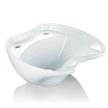Hvid keramikvask, til montering på en frisørsøjle. Bredde 50 cm, længde 56 cm, indvendig dybde 25 cm. Uden afløbsslange og mekanisme.