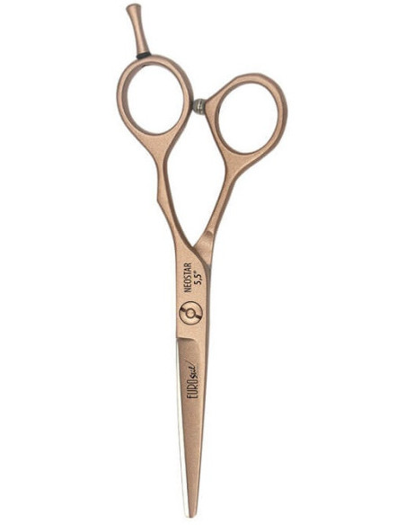 Saks NEOSTAR 5,5'' – Rosaguld. Elegant og præcis NEOSTAR-saks i en luksuriøs rosaguldfarve, skabt til professionelt arbejde. Lavet af 420J2-stål af høj kvalitet, giver de et glat, kontrolleret og pålideligt resultat med hvert klip. Saksens hårdhed på 56 HRC garanterer fremragende holdbarhed, stabil ydeevne og lang levetid i det daglige arbejde i salonen. Størrelse: 5,5"; Materiale: 420J2 stål; Hårdhed: 56 HR