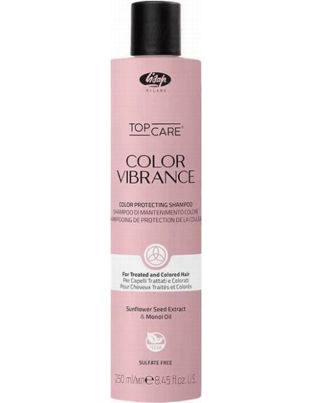 Lisap Color Vibrance Color Protecting Shampoo er en professionel sulfatfri shampoo af højeste kvalitet til farvet hår. Et uundværligt plejeprodukt for kvinder, der regelmæssigt besøger skønhedssaloner og også farver deres hår. Den bevarer intensiteten og lysstyrken af kosmetisk farve i lang tid og forhindrer den i at vaskes ud, falme og brænde ud i solen. Dette sparer ejerne tid og penge på genfarvning. Takket være det høje indhold af solsikkefrøekstrakt, værdifuld monoi-olie og magnoliaekstrakt nærer og fugter shampooen håret intensivt, hvilket gør det skinnende, silkeagtigt og blødt at røre ved. Den har en delikat, forfriskende aroma med noter af lavendel, eukalyptus og moskus. Shampooformlen, der er fremstillet i henhold til Vegan Friendly-standarden, indeholder ikke ingredienser af animalsk oprindelse og er ikke testet på dyr. Indeholder natriumolefinsulfonat C14-16 som vaskebase, som er et sikkert alternativ til sulfater, giver dybderensning af hår og hovedbund uden at udtørre, beskytter farven mod udvaskning, skaber et rigt skum og er velegnet til følsom hud. Kort sagt er Color Vibrance Color Protecting Shampoo et bevidst valg for dem, der foretrækker miljøvenlige og sikre plejeprodukter, der giver fremragende kosmetiske resultater og har en lav risiko for allergiske reaktioner og hudirritation.