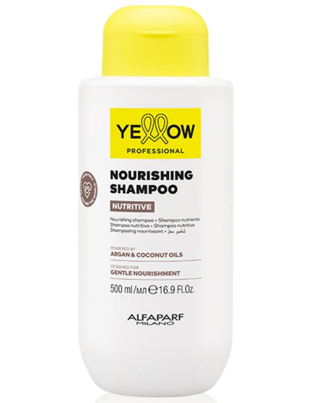 Den ideelle løsning til nærende tørt hår. Nærende shampoo renser blidt håret, samtidig med at den nærer og fugter håret dag efter dag, genopretter hårets vitalitet og giver håret et sundt udseende. Ideel til hyppig brug. Formlen er beriget med: - Arganolie, som indeholder Omega 3, Omega 6 og E-vitamin, genopretter hårets vitalitet og giver håret silkeblødhed; - Kokosolie, som indeholder blødgørende ingredienser og E-vitamin, fugter og nærer hårfibrene perfekt, forhindrer håret i at kruse; - Aloetrix-kompleks med aloe vera, hvedeproteiner og UV-filtre fugter håret, letter hårredningen og beskytter det ydre lag af hårstrukturen. Begge olier har fremragende fugtgivende og regenererende egenskaber. BRUG: Påfør en lille mængde shampoo i vådt hår og hovedbund. Emulger, massér blidt, og skyl derefter. Gentag om nødvendigt. Fortsæt din hårplejerutine med YELLOW Professional NUTRITIVE nærende maske.