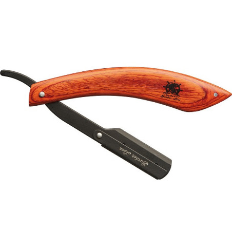 430 rustfrit stål, sortlakeret, orange amerikansk træhåndtag. Leveres i en praktisk papæske. Halvbladet. Orange farve.