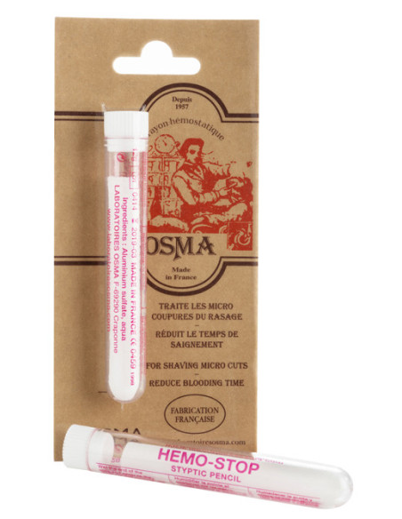 Hæmostatisk blyant til at stoppe blødning fra barbering med mikrosnitsår. CE-certificeret. Til udvortes og personligt brug. Fås i et praktisk og sikkert rejsetube for nem brug.