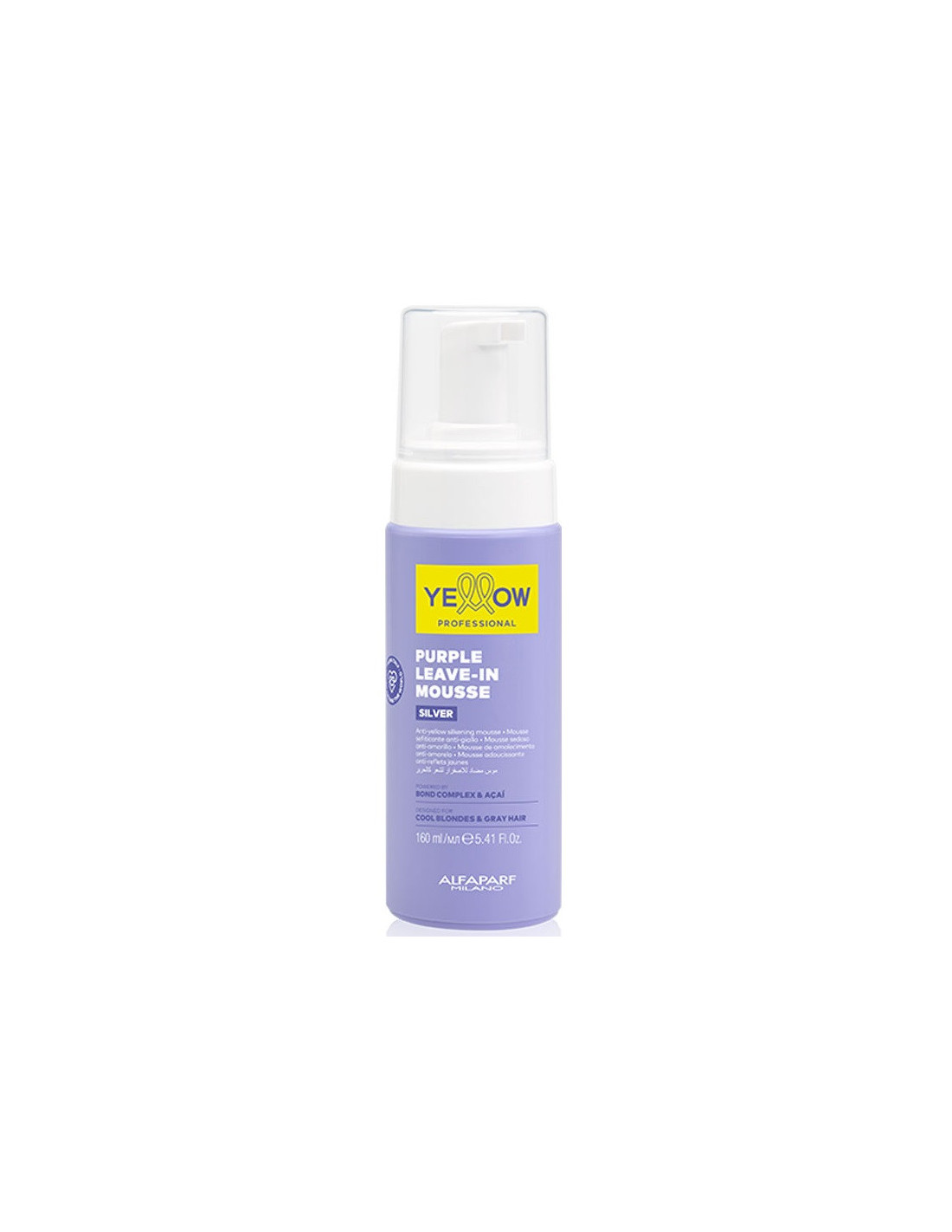 SILVER PURPLE mousse fugter intensivt håret og giver det glans, samtidig med at den neutraliserer uønskede gule toner. Bevarer hårtonens kølighed. Det anbefales at bruge moussen efter hårvask med shampoo og balsam for at beskytte håret maksimalt mod gulning. Må ikke skylles ud! Formlen er beriget med: - asaibærpigment, som har antioxidante egenskaber og neutraliserer gule og orange hårtoner; - Bond-kompleks, som genopretter og fugter skadet hår, skaber et beskyttende lag omkring håret, styrker håret og beskytter hårstrukturen mod ny skade; - Aloetrix-kompleks med aloe vera, hvedeproteiner og UV-filtre fugter håret, gør håret lettere at rede og beskytter det ydre lag af hårstrukturen. BRUG: Klem 2-5 doser ud. Påfør i vasket, håndklædetørt hår. Fordel jævnt med en kam langs hele hårets længde og spidser. Må ikke skylles ud. Fortsæt med at tørre og style dit hår.