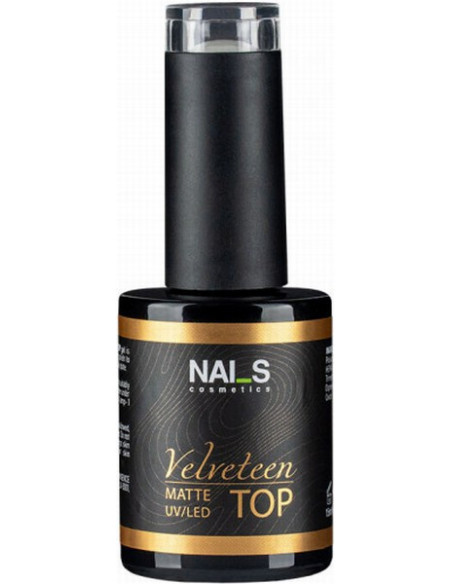Ekstremt fløjlsblød mat top uden et klæbrigt lag. Perfekt dækkeevne og holdbarhed. Ændrer ikke nuancen på gellack/gel, matcher perfekt både lyse og mørke pigmenter. Slides ikke af og forbliver ikke skinnende! Skaller ikke af eller revner! Pletter ikke gellack/gelcoating i andre nuancer. Polymerisationstid: LED - 30 sek., UV - 1 min.