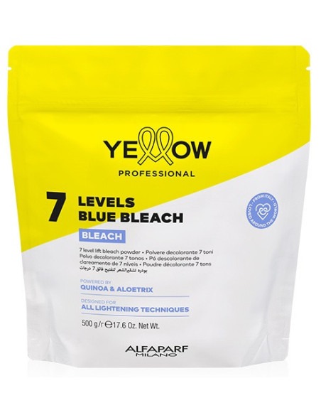 Maksimal effektiv og skånsom pudder til hårblegning op til 7 niveauer. Pudderet indeholder et blåt pigment for Anti-Yellow-effekten, der neutraliserer gule hårtoner og opnår perfekt rene hårblegningsresultater. Pudderet lysner effektivt håret, gør håret lysere med 7 toner, samtidig med at det bevarer hårstrukturens integritet under blegning. Pudderet har en homogen og ikke-flygtig tekstur uden støv. Pudderet blandes let med YELLOW Professional TECH+ PEROXIDE-oxidanter. Resultatet er en cremet blanding, der nemt, hurtigt og præcist kan påføres håret. Blandingen af pudder og oxidant dækker håret jævnt, er skånsom mod hovedbunden og hårstrukturen og giver dig mulighed for at opnå maksimale effektive resultater. Kun til professionel brug. Pudderformlen er beriget med: - quinoafrøekstrakt, som hjælper med at opretholde keratinbindinger i hårstrukturen; - Aloetrix-komplekset, som indeholder aloe vera-ekstrakt, hvedeprotein og UV-filtre, fugter håret effektivt, giver håret silkeblødhed og beskytter hårstrukturens integritet under blegning. BRUG: Bland 9 LEVELS WHITE BLEACH-pulver med YELLOW Professional oxidant i en ikke-metallisk beholder. Blandingsforhold - fra 1:1,5 til 1:2 (se brugsanvisningen). Bland blandingen med en børste, indtil der opnås en homogen pasta, og påfør i tørt, uvasket hår. Lad det virke i højst 50 minutter, og skyl derefter grundigt og vask håret med shampoo. Hvis blegeteknikken involverer påføring af blegemiddel i hovedbunden, må pulveret ikke blandes med et oxidationsmiddel, der er stærkere end 6% (20 vol.). MÅ IKKE BRUGES UNDER VARME!